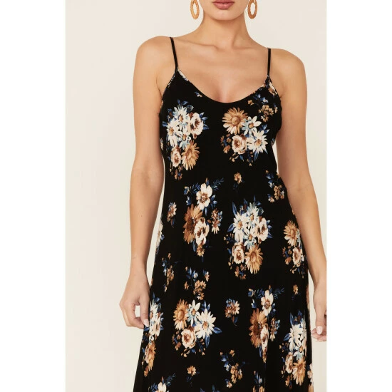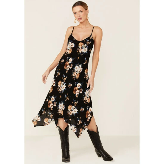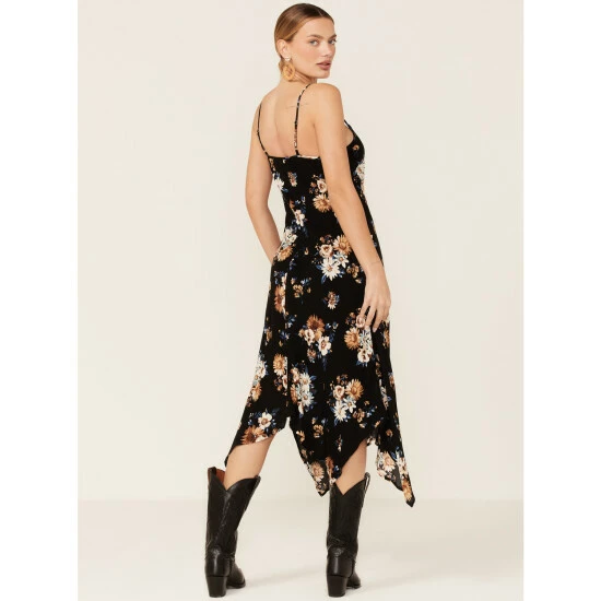 Best reviews of ๐ Wild Moss ๐ฉ Women’s Black Floral Hanky Hem Slip Midi ๐ Dress ๐